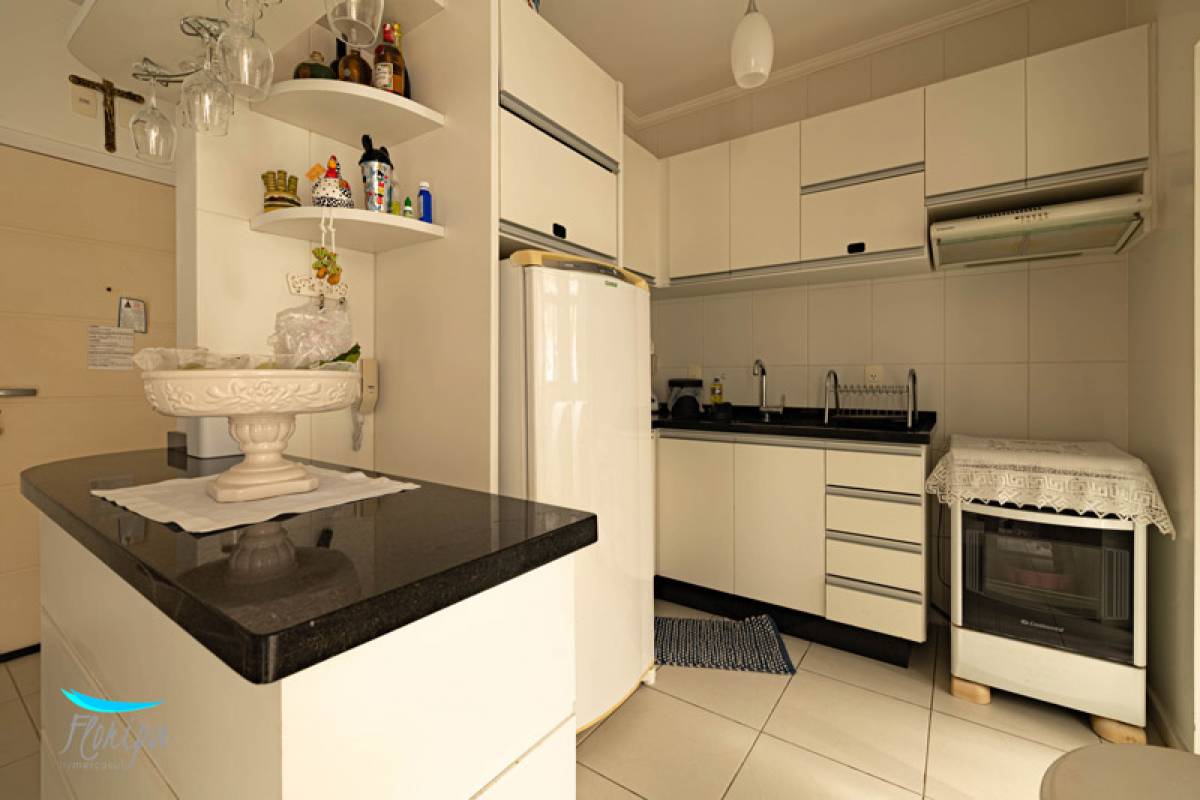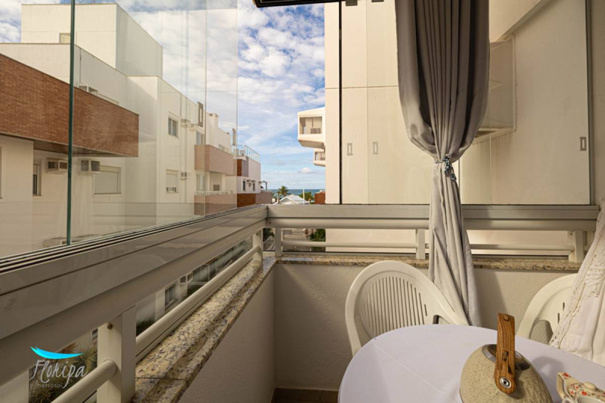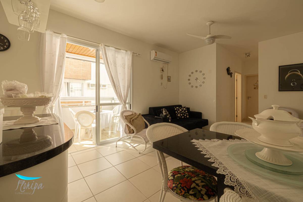 Apartamento de 2 dormitórios, 2 banheiros, sala e cozinha integradas, sacada com churrasqueira e área de serviço. Na beira mar dos Ingleses com vista mar, mobiliado, 70m² bem distribuídos, posição solar norte. Condomínio com infraestrutura de lazer.