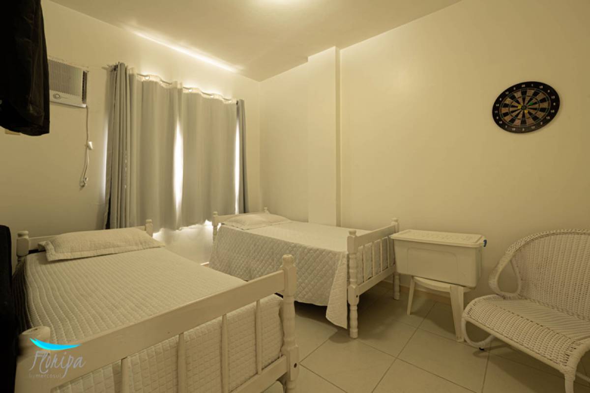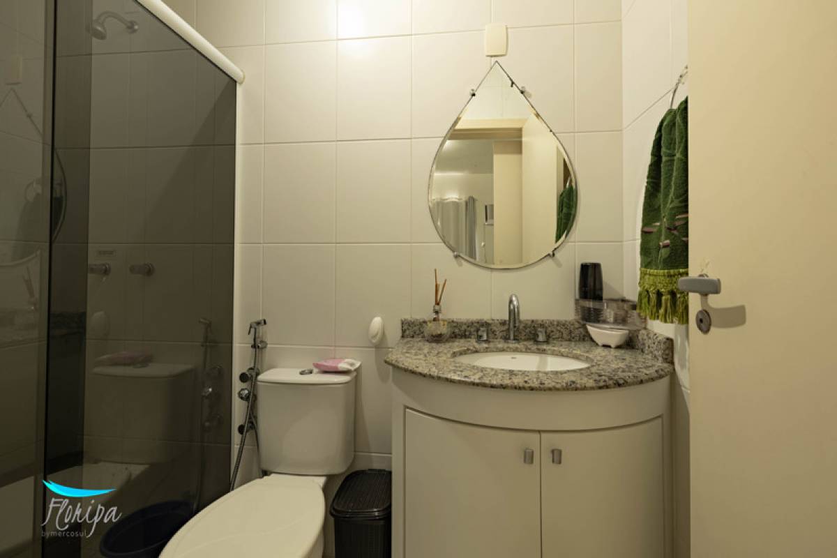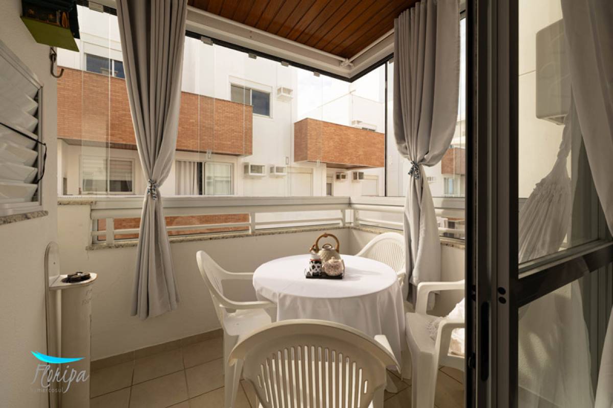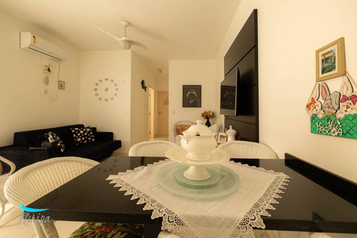 Apartamento de 2 dormitórios, 2 banheiros, sala e cozinha integradas, sacada com churrasqueira e área de serviço. Na beira mar dos Ingleses com vista mar, mobiliado, 70m² bem distribuídos, posição solar norte. Condomínio com infraestrutura de lazer.
