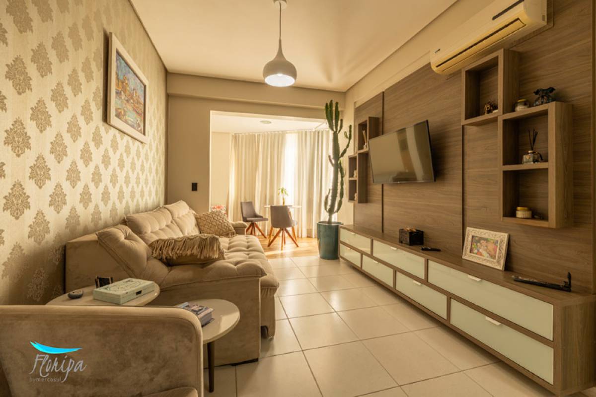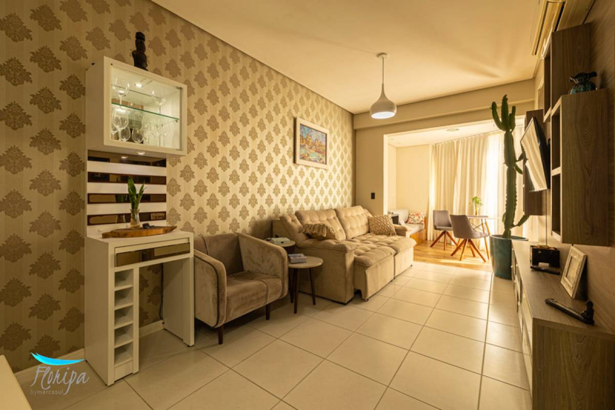 Apartamento a beira mar de Ingleses, 2 dormitórios, 2 banheiros, sacada com vista mar, sala e cozinha ambientes integrados e mobiliado. 1 vaga de garagem com Hobby-Box, salão de festas e piscina. Posição solar Norte. 73,22m².